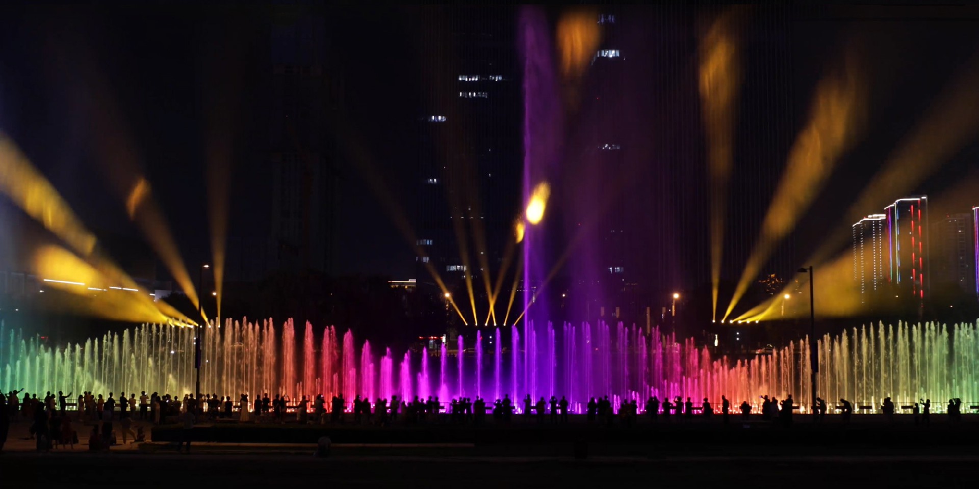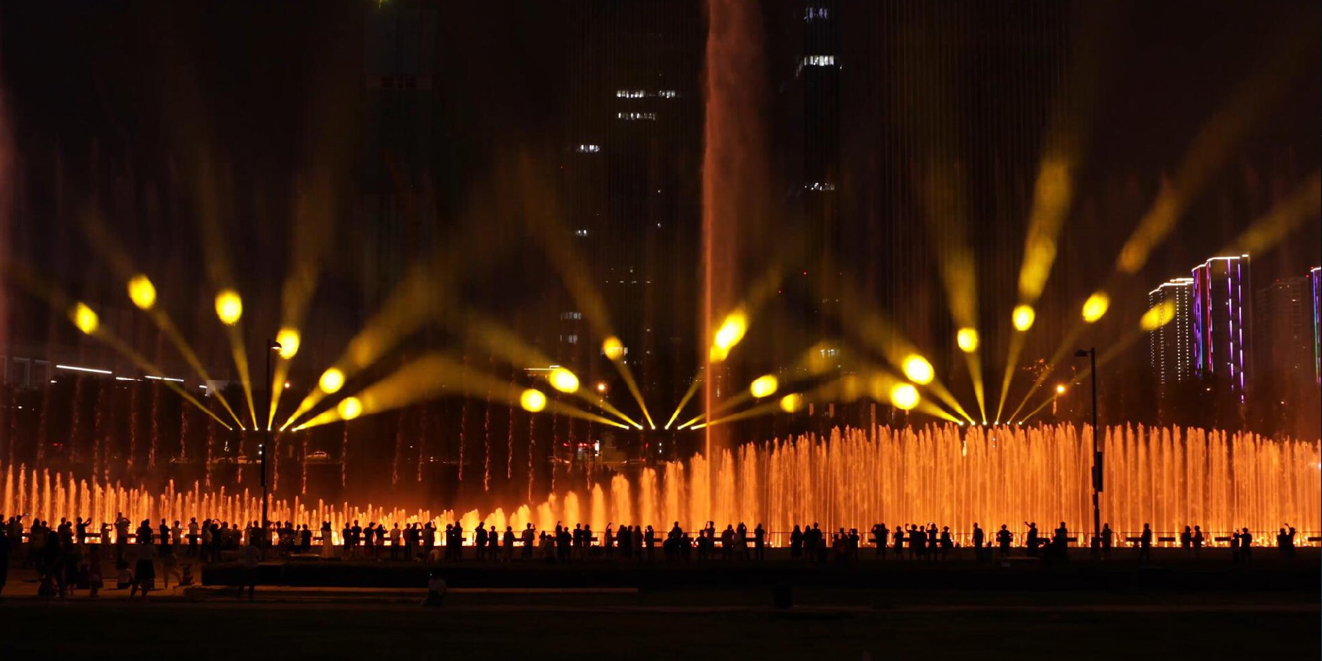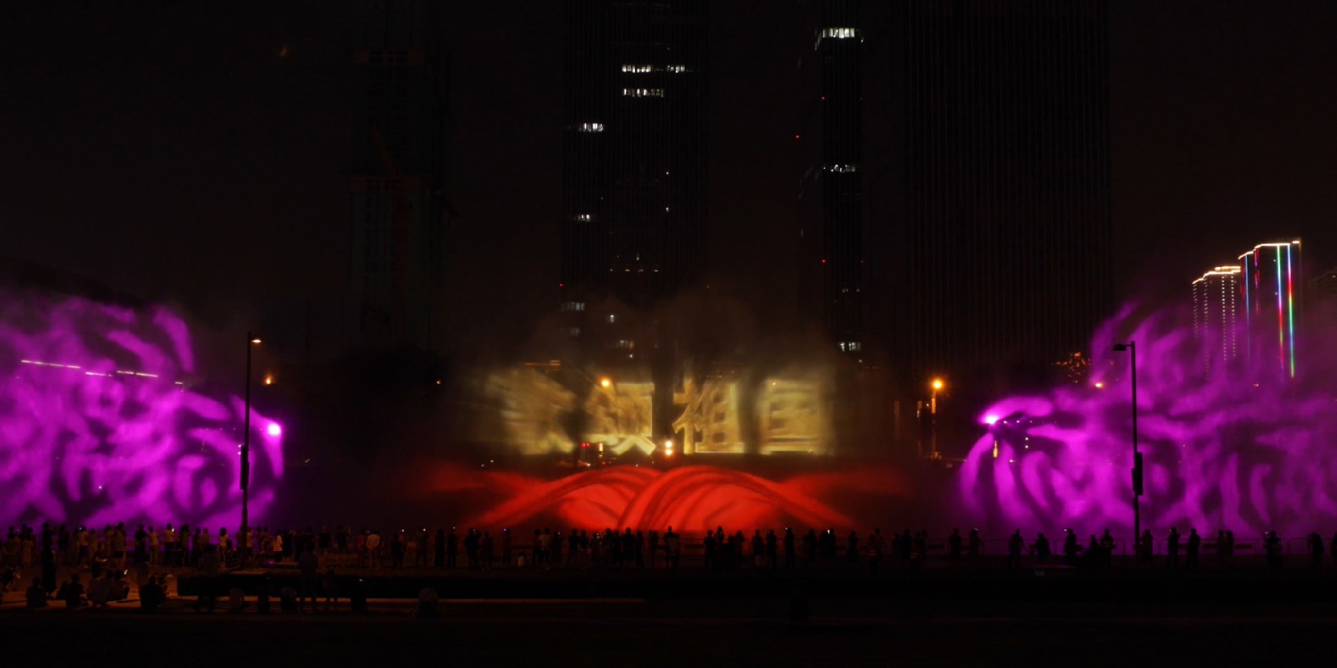 太原青运会水秀分为六个喷泉表演区域,依托于水和光影,展示太原当代城市发展速度,城市价值,城市气质。凸显太原开放发展的新姿态,展望幸福美好的未来。