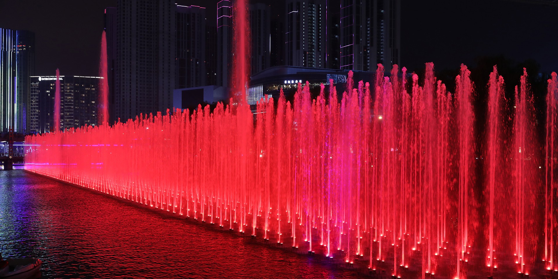 太原长风青运会水秀恒源喷泉仅用时25天,共装配各种喷泉设备14500台套,铺设电缆396公里,高品质地打造了太原长风青运会2.1公里的水秀项目,创造了水景行业叹为观止的建设速度的记录。