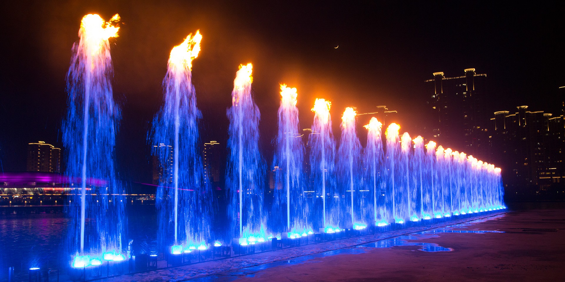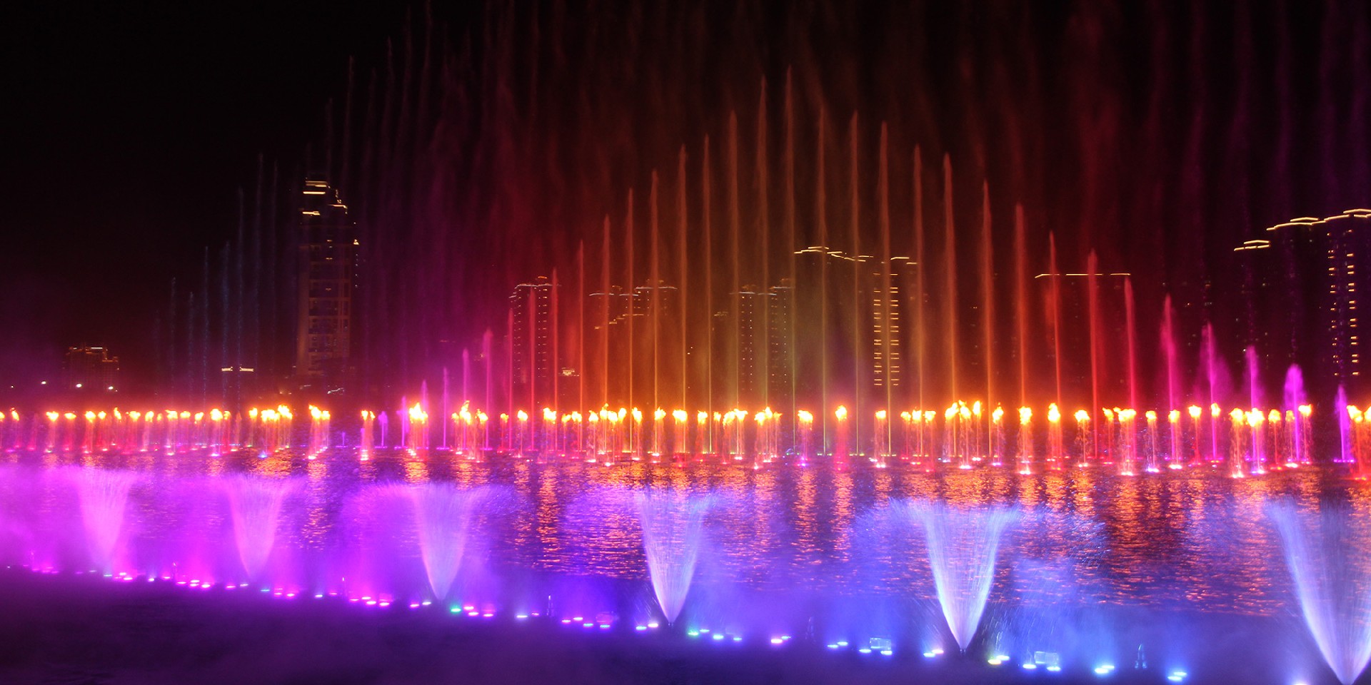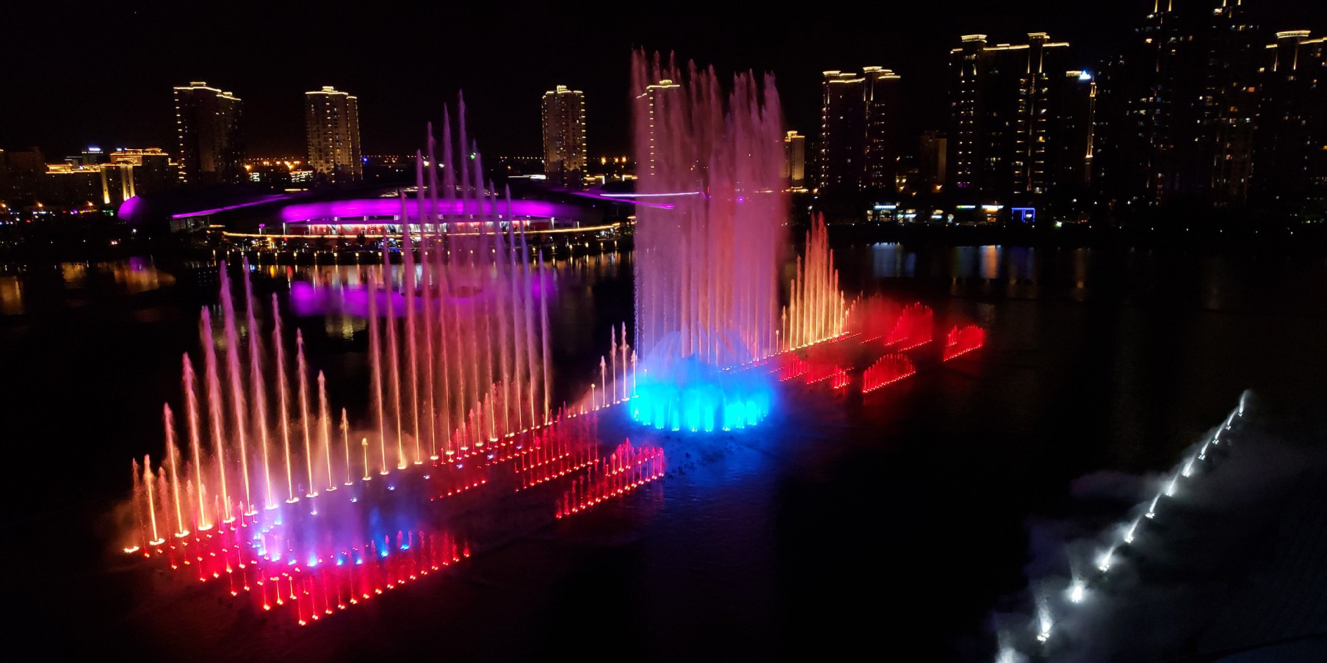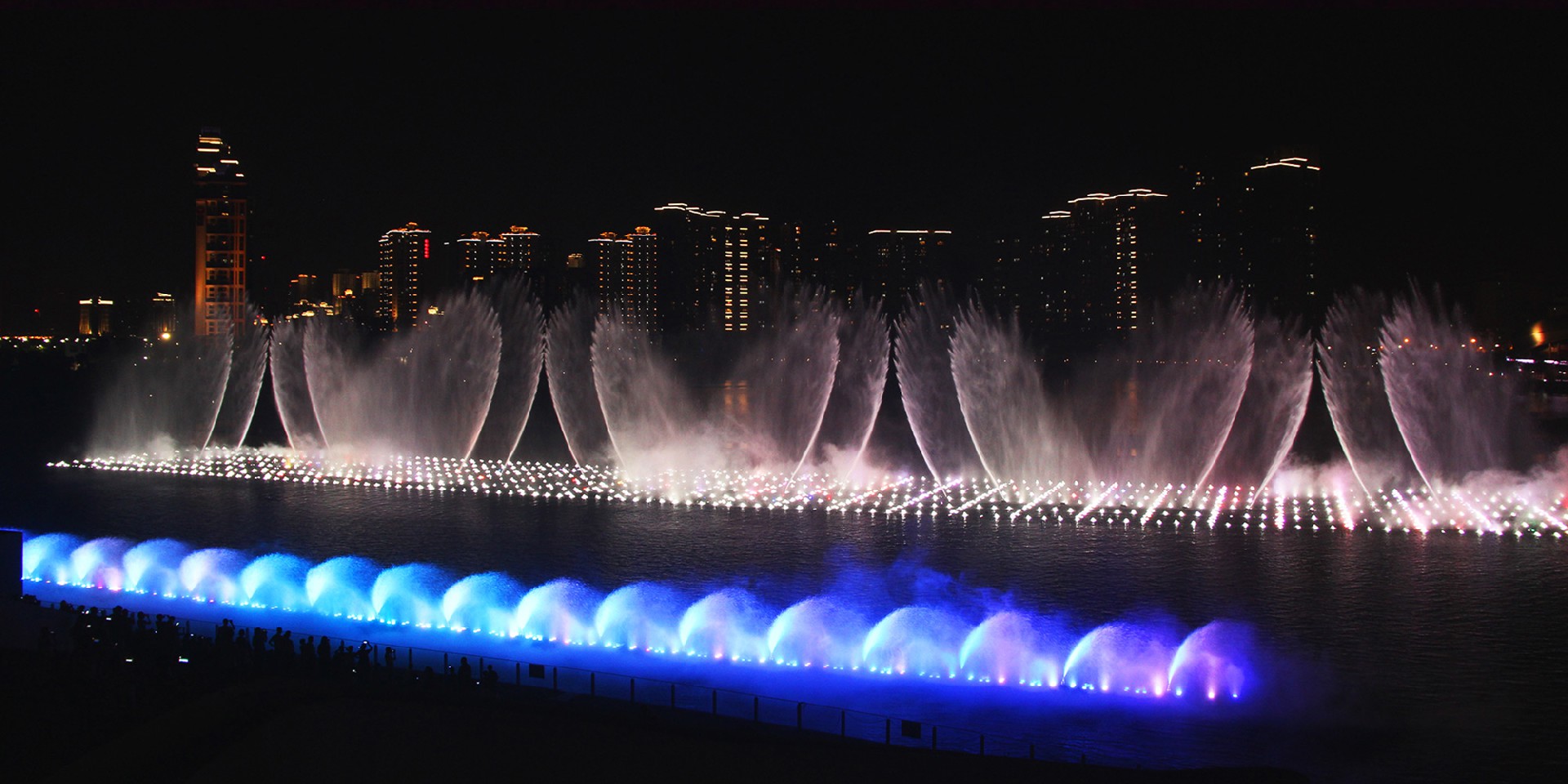 厦门金砖五国峰会水秀总投资3亿元,横向200米,纵深跨度100米,共投入11种水特效设备,其中7种为江苏恒源研发的专利技术设备,江苏恒源凭借过硬的综合实力和前沿的设计理念,技冠全球,为厦门“金砖五国峰会”再添力作。
