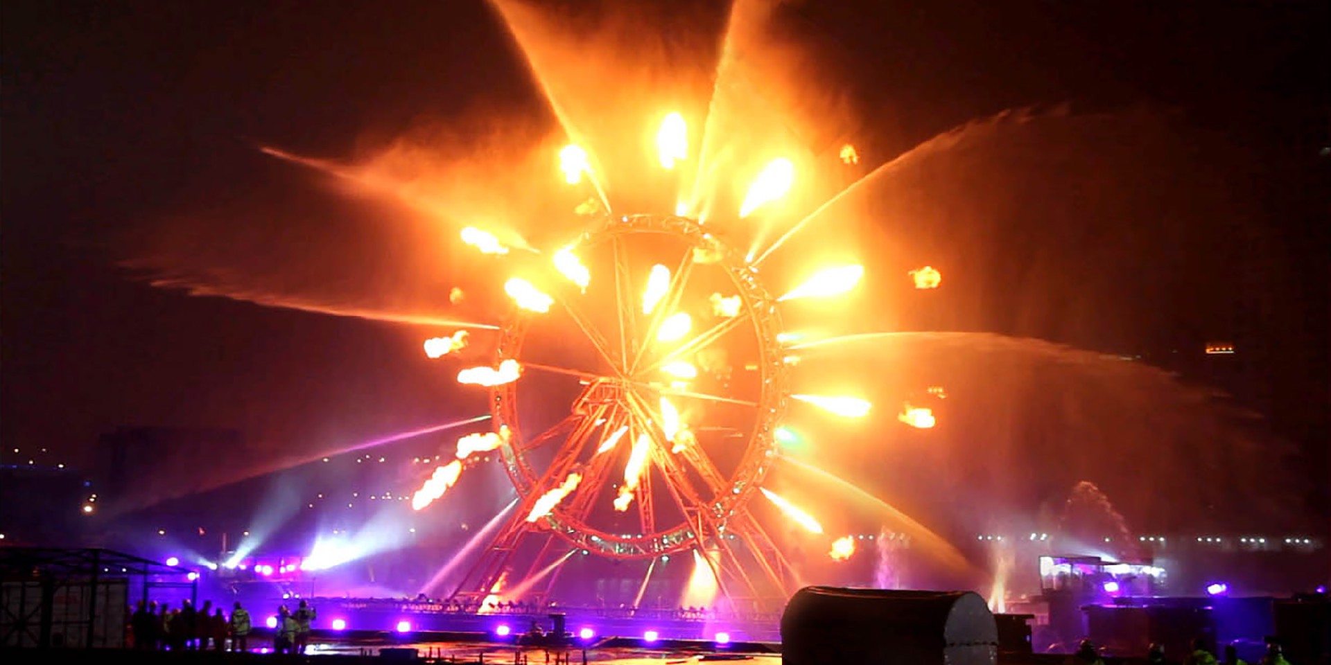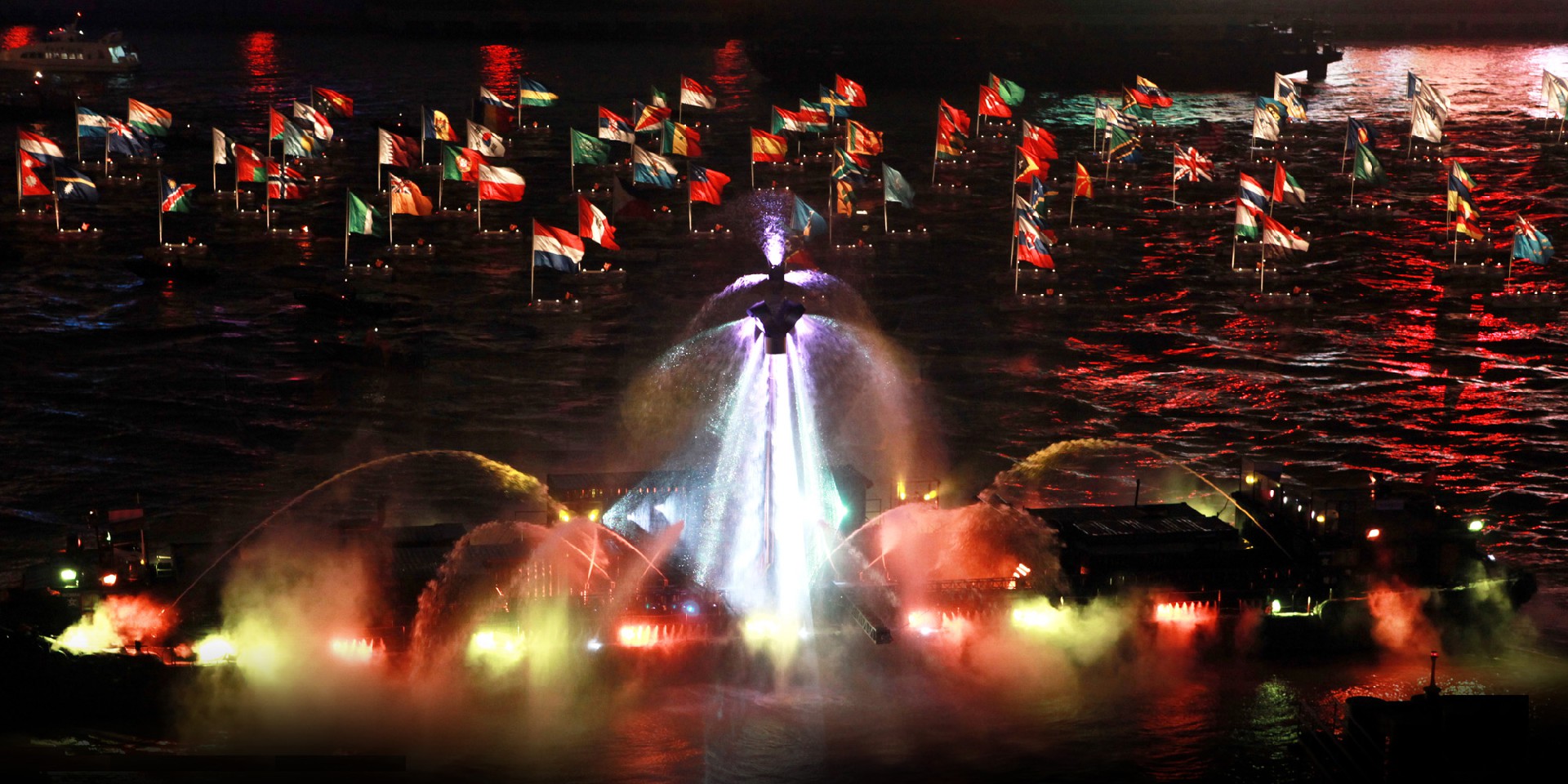 2010年4月30日上海世博会开幕式在黄浦江上盛大开启。江苏恒源与世界创意设计团队法国ECA2公司联手打造了开幕式主会场极其绚丽壮观的多媒体水秀表演,展现了大国崛起的盛况。