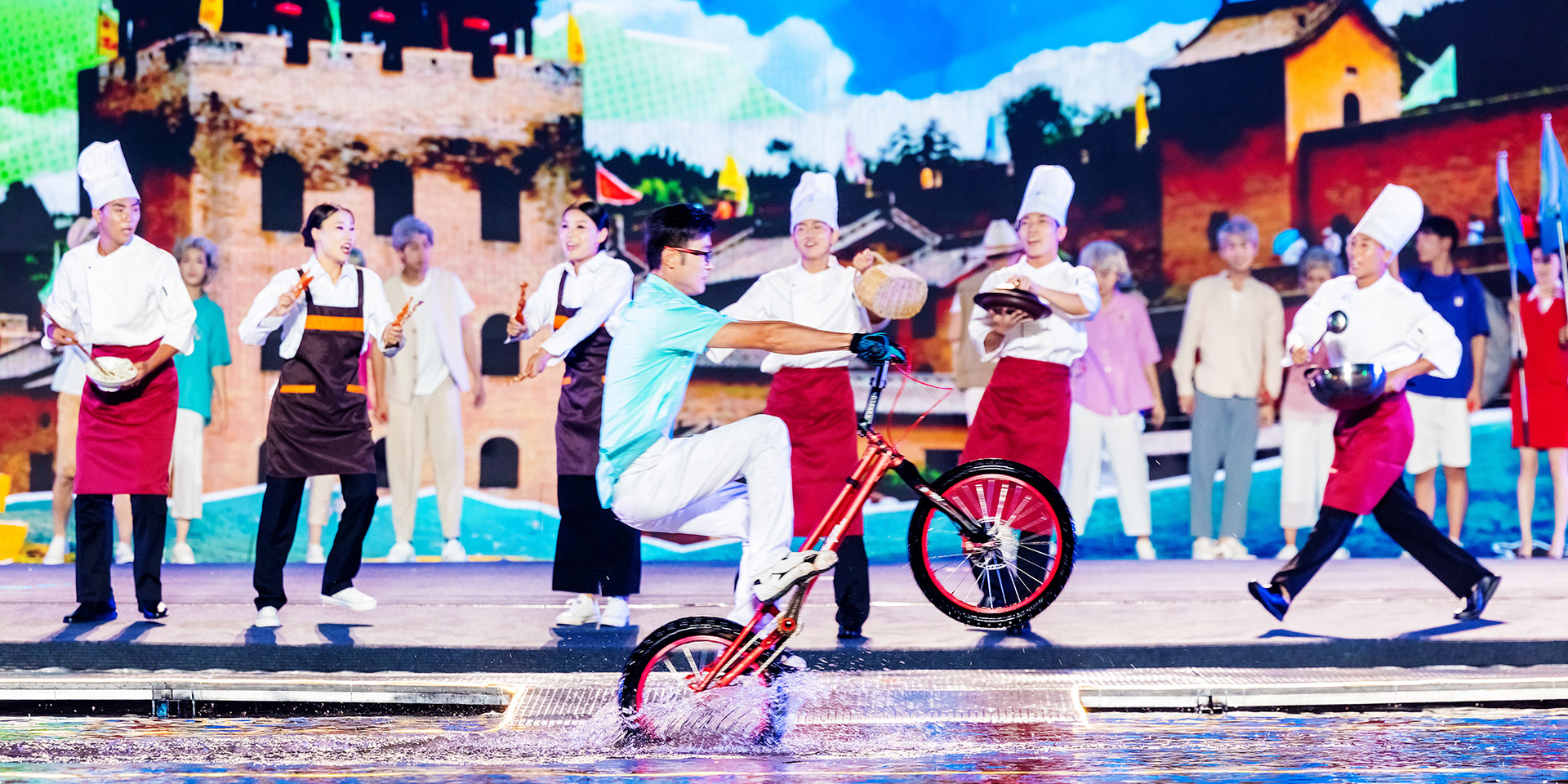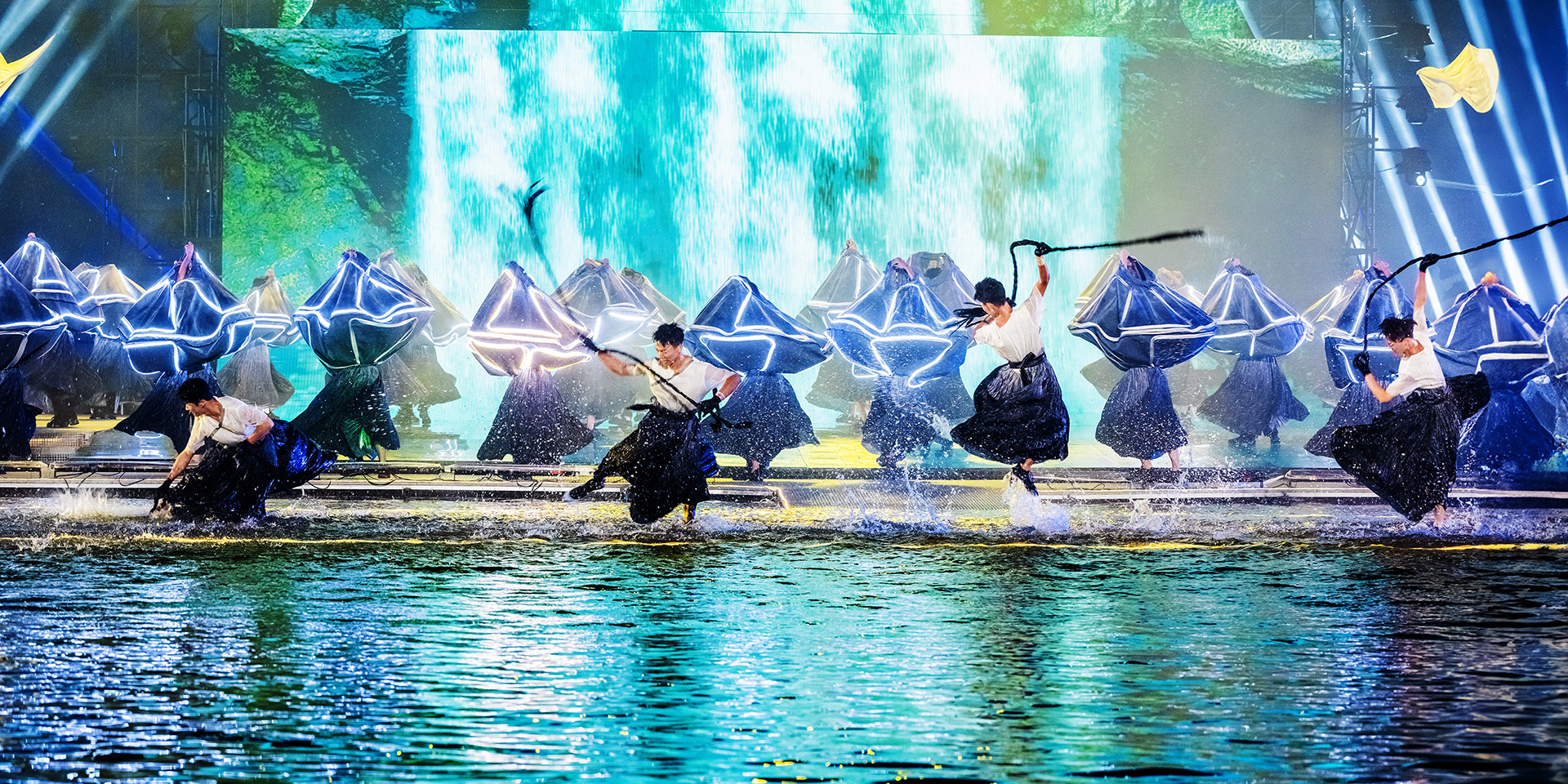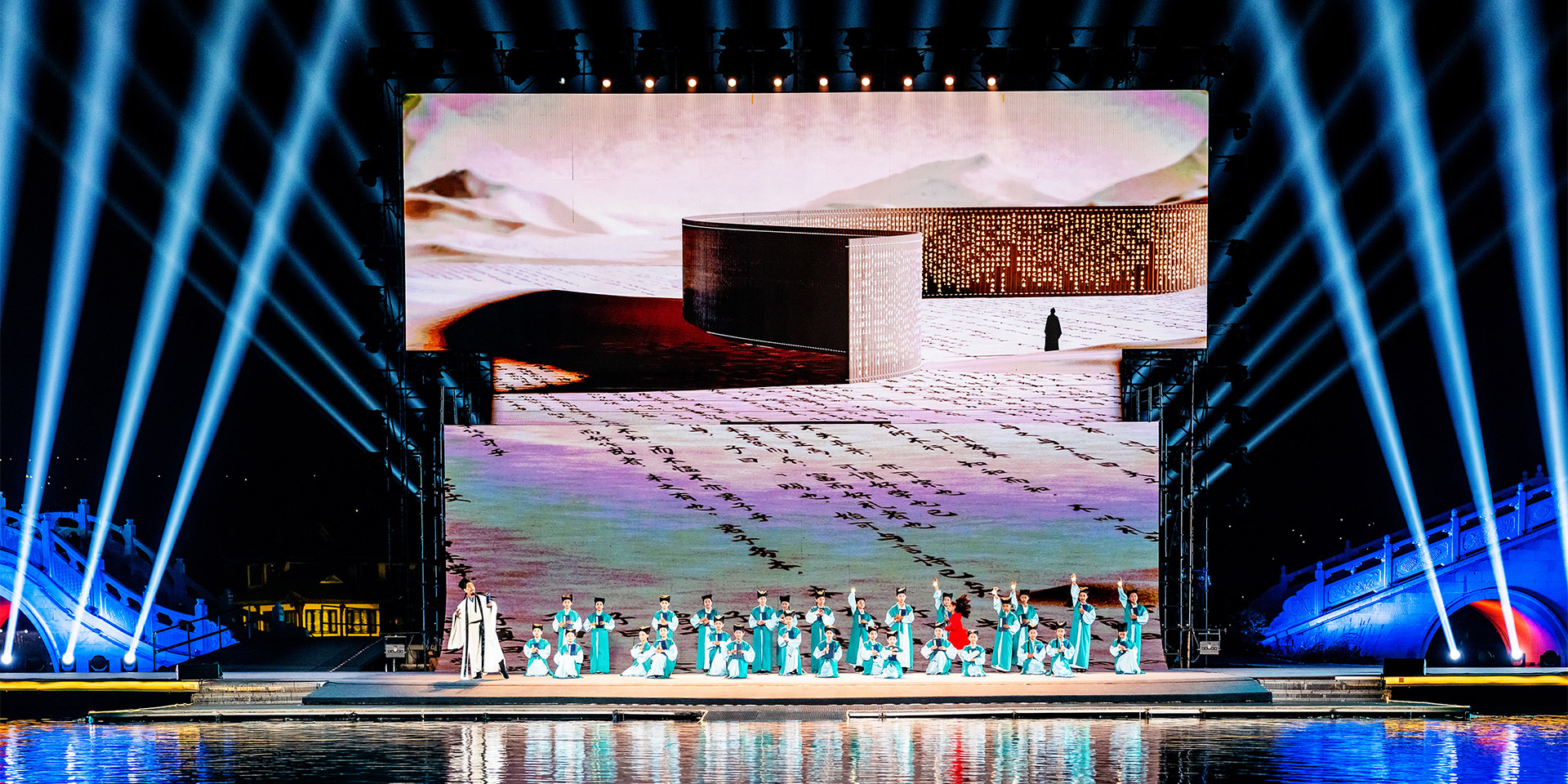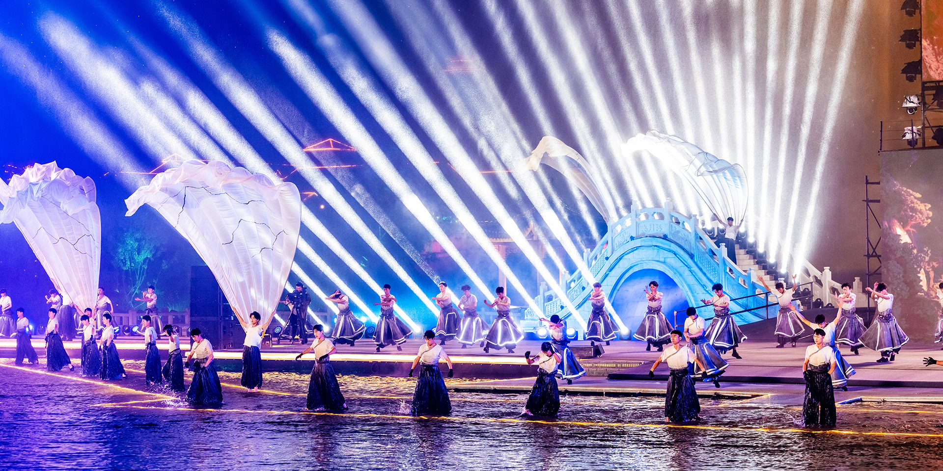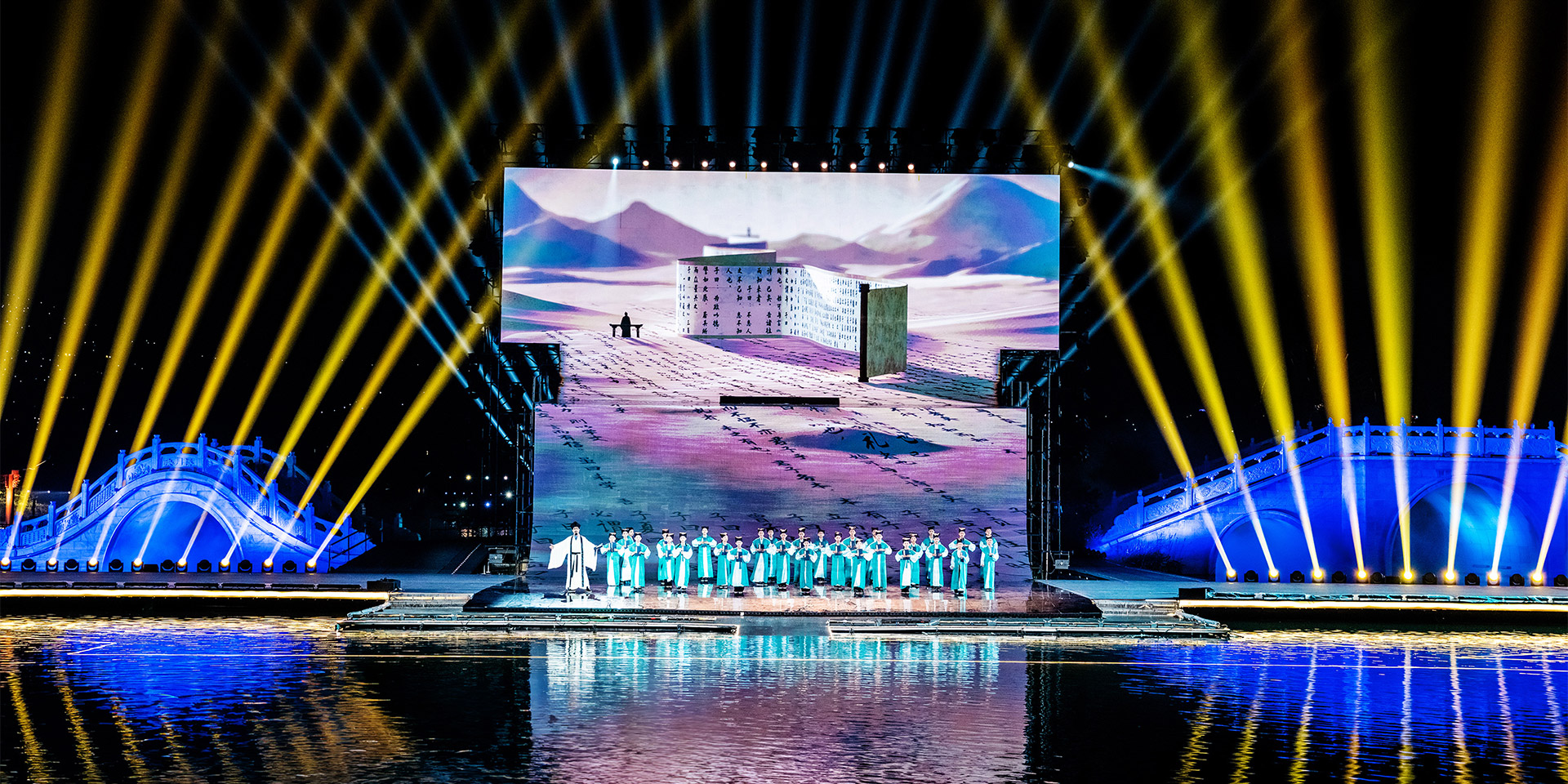 中国·山西康养发展大会开幕式突破传统舞台演绎模式,启用巨幅画卷(LED屏幕)和天幕投影的组合表演,运用光影水舞配合戏剧、舞蹈以及影像画面,增强舞台的纵深感、氛围感、科技感,塑造立体空间,将多种表演元素糅合,为舞台增添更为丰富细腻的质感。通过音舞诗画秀《云锦太行》、人文情境秀《书院有声》、歌舞秀《古堡是我家》、光影水舞秀《夏季》、国宝活化秀《二十八星宿》、时尚音乐剧《欢聚晋城》多维度动态呈现出晋城历史画卷、时代画卷和未来画卷。