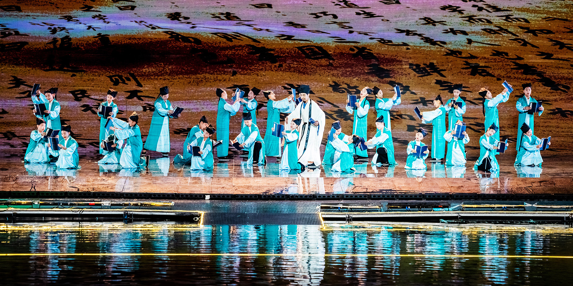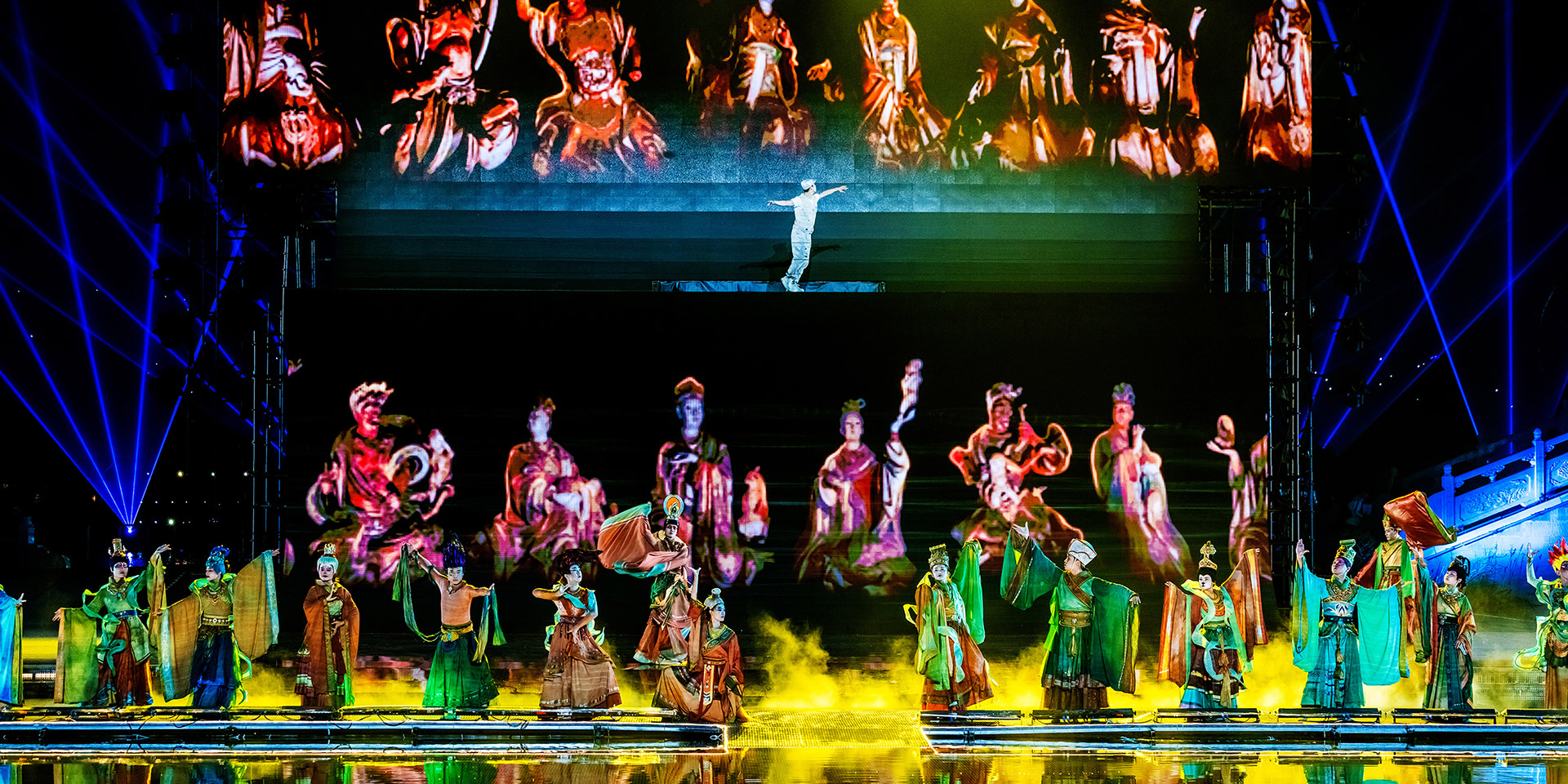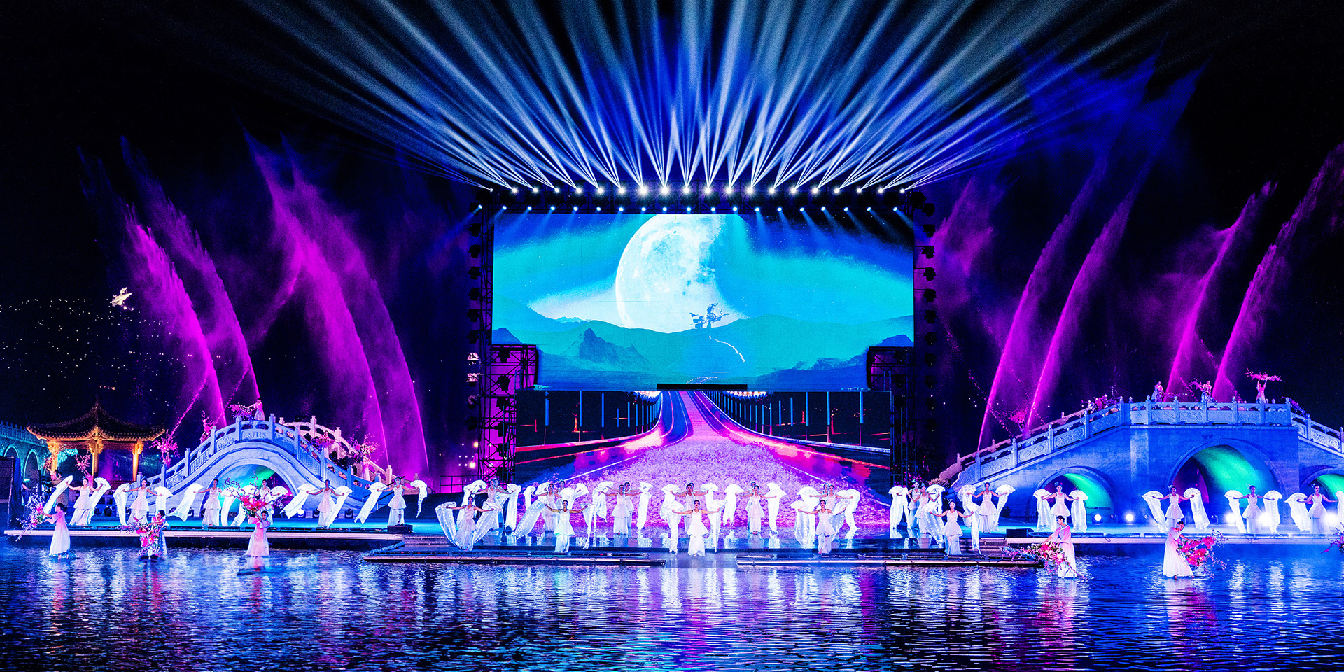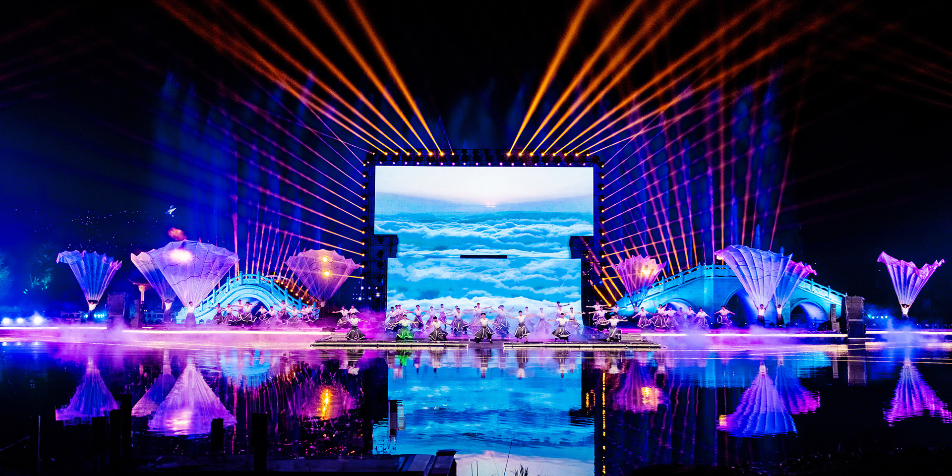 中国·山西康养发展大会开幕式突破传统舞台演绎模式,启用巨幅画卷(LED屏幕)和天幕投影的组合表演,运用光影水舞配合戏剧、舞蹈以及影像画面,增强舞台的纵深感、氛围感、科技感,塑造立体空间,将多种表演元素糅合,为舞台增添更为丰富细腻的质感。通过音舞诗画秀《云锦太行》、人文情境秀《书院有声》、歌舞秀《古堡是我家》、光影水舞秀《夏季》、国宝活化秀《二十八星宿》、时尚音乐剧《欢聚晋城》多维度动态呈现出晋城历史画卷、时代画卷和未来画卷。