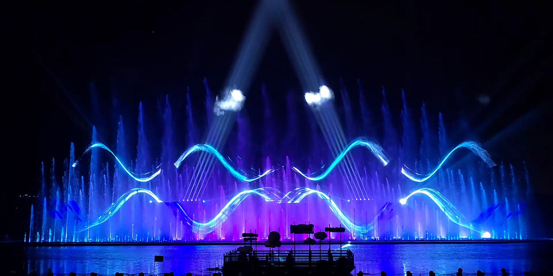 太原青运会水秀分为六个喷泉表演区域,依托于水和光影,展示太原当代城市发展速度,城市价值,城市气质。凸显太原开放发展的新姿态,展望幸福美好的未来。