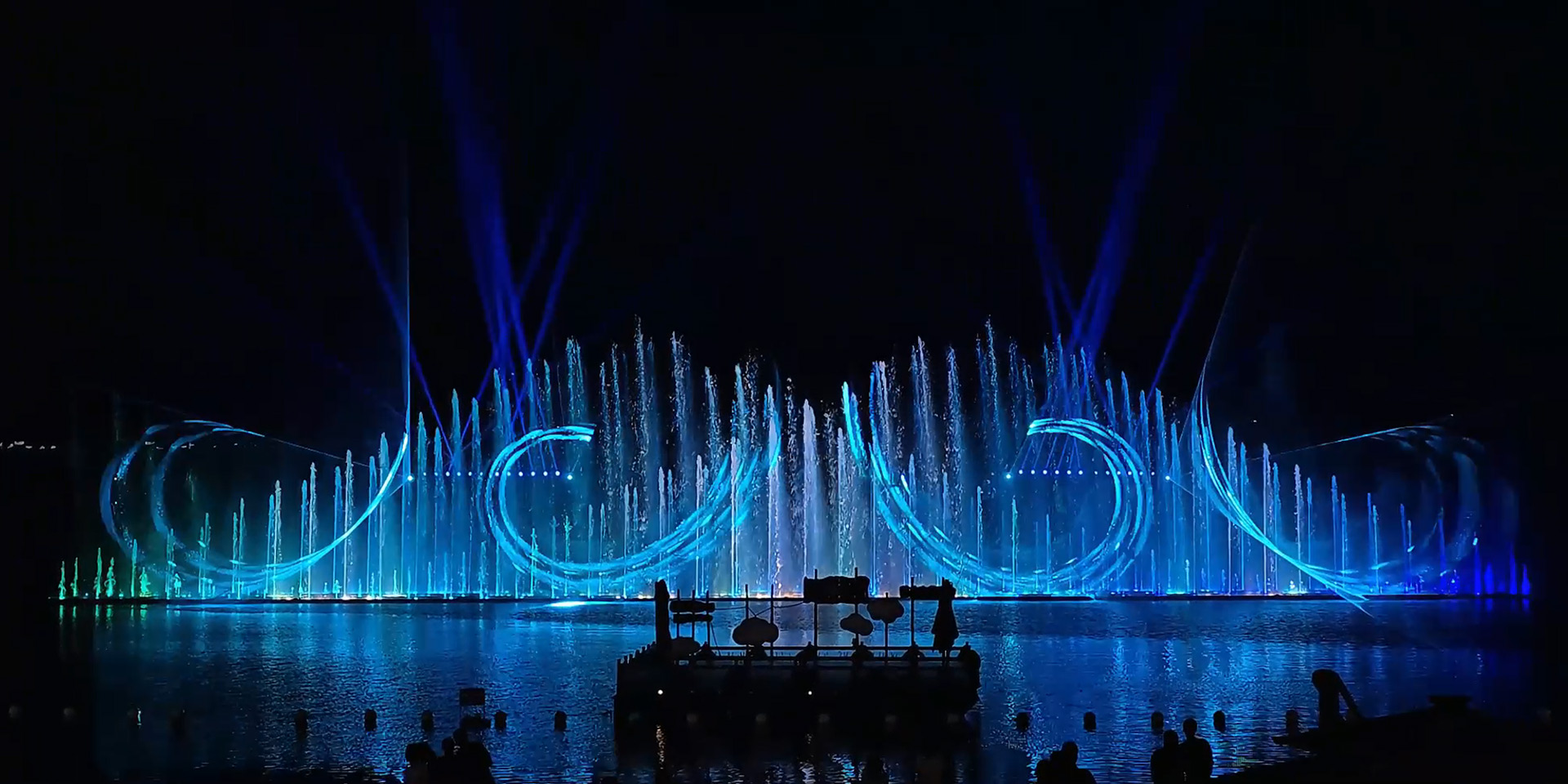 长春肆季南河光影水秀凭借百米水幕投影,将现代科技与伊通河自然景观巧妙融合,通过Depence系统精准协同,令水柱随乐起舞,光影千变万化,宛如动态画布演绎着对春城的深情告白。水秀通过生态、文化、休闲与消费业态的深度结合,成功打造出长春璀璨的夜间新地标。